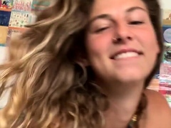 Busty teen brunette suck cocks and gets fucked by two friend
